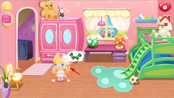 8、在卧室里点击糖糖,就能为她挑选并换上你喜欢的衣服了。