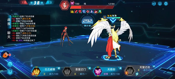 最后就是天使王突破的打法了,突破这个难度还是蛮高的,可以带寒冰公主或者其他降属性的亚比先降一下属性,然后用天使王使用两次一技能王之威慑后使用大招,要注意的是,天使王上场第四回合或者五回合的时候就必须使用第二技能保证血量了,因为这个时候你会发现纯一直在增加输出。不出意外的话,天使王魔攻数值提满后大招基本可以达到七八千左右的伤害,触发暴击加上无视魔防的大招可以达到破万的伤害,也是很给力了。(没有天使王的话就要用黄金圣天伊慢慢试了,因为用黄金圣天伊的话需要慢慢打,中间纯会时不时地大量回血,造成回合拖得越久纯的血量不但没有减少反而增加,这个就需要看运气来了)