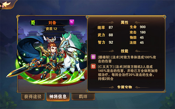 刘备总的来说,大招辅助并不给力,但是三个特性都还不错,保证了刘备的辅助能力。减怒和加怒可以说是最为实用的辅助能力,配合三马回怒效果显著,大大加快了怒气技能的释放。
