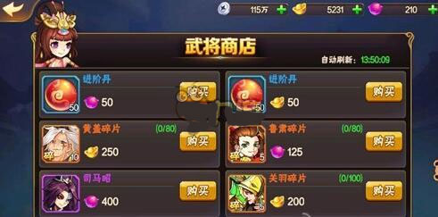 2、武将商店,在商店中午我们可以通过元宝购买的方式来获取,这个方法也是一个比较快速的获取方法,但是适合元宝较多玩家,堪称土豪!