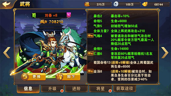 刘备总的来说,大招辅助并不给力,但是三个特性都还不错,保证了刘备的辅助能力。减怒和加怒可以说是最为实用的辅助能力,配合三马回怒效果显著,大大加快了怒气技能的释放。
