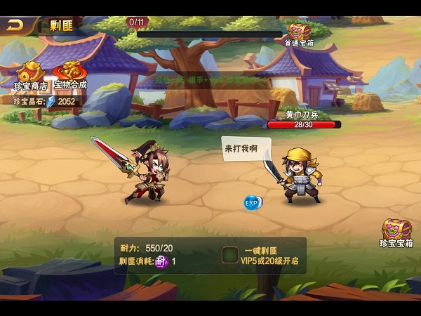 剿匪比较消耗耐力,玩家要准备足够的耐力丹哦。VIP5或者20级,可以开启一键剿匪。