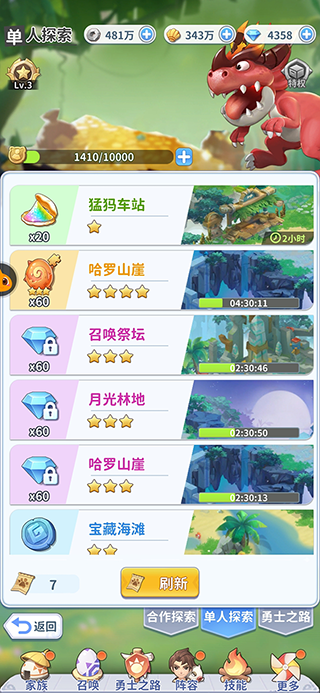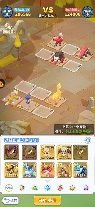 游戏中有丰富的玩法,包括勇者之路(通过挂机获得奖励)、单人探索和合作探索任务、以及捕兽笼子和强化石等资源获取方式。宠物培养是核心玩法之一,玩家可以通过召唤、捕捉、升级、进化等方式提升宠物属性,并通过合理的阵容搭配在战斗中占据优势。