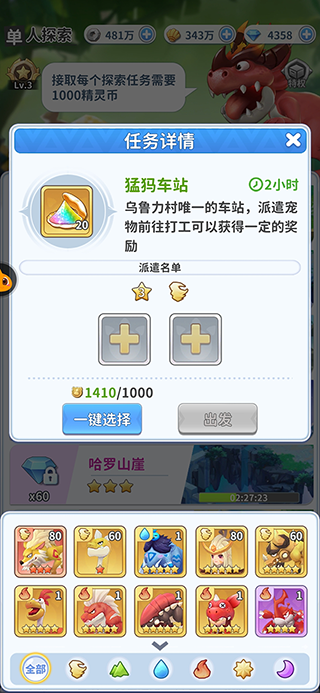 和单人探索的模式基本一致,但需要额外派遣自己好友或者家族成员的宠物作为探索外援,合作订单不消耗精灵币。