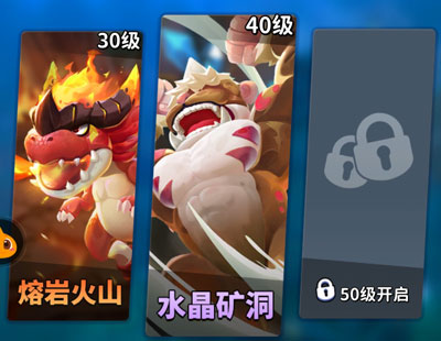 3、场景:熔岩火山(30级开启)、水晶矿洞(40级开启)、(50级开启)