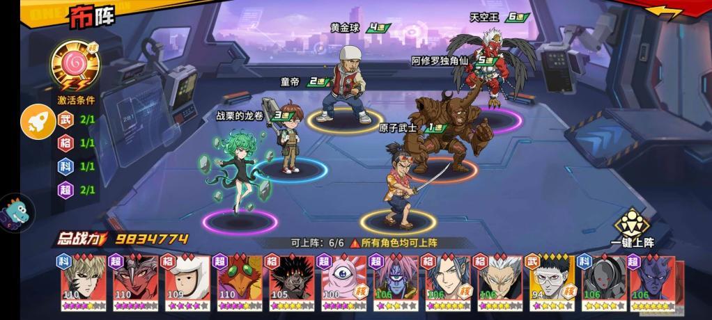 该阵容适合缺少僵尸、大眼核心的新区玩家, 原子武士一速造成高额伤害,并且打出【崩坏】效果,童帝二速可崩坏敌方前排,同时突破至5星后可使周围队友暴走增伤;觉醒龙卷、黄金球三速、四速行动,对敌方造成高额全体伤害,觉醒龙卷使敌方命中【力场】效果,敌方行动前受到持续伤害,黄金球通过被动以及天空王额外增伤对地方造成更高的额外伤害,使对手受到致命的打击。