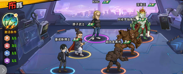 [王之凝视]目前版本中King的普攻只有一点伤害,看似鸡肋的设定恰到好处的还原了动漫中King虚张声势的做派;与基诺斯博士、蚊女、波罗斯等角色配合,相得益彰。