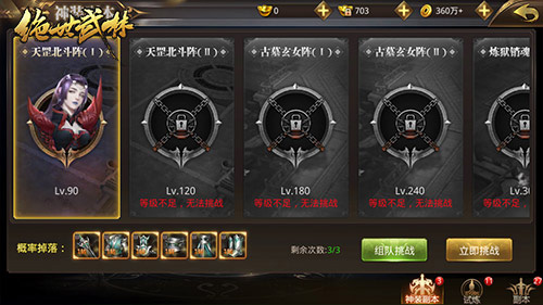 只要打开主界面的“每日挑战”,就能看到“神装副本”。神装副本按等级开放,随着大家等级越高,可挑战的副本数量也会随之曾多,当然掉落的奖励品质也会越来越好。