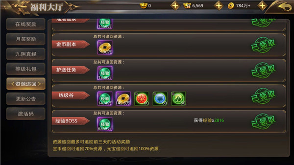 上面这些副本推荐大家每天都记得完成,难度不高而且还能挂机,还是挺轻松的。当然如果你忘记的话,第二天还能通过游戏里的资源找回系统,但是奖励方面可能就要稍微打些折扣了。