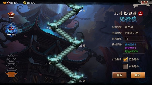六道轮回是非常经典的爬塔系统,玩家依靠自身实力挑战每层的怪物获取奖励。奖励包括经验及封灵。