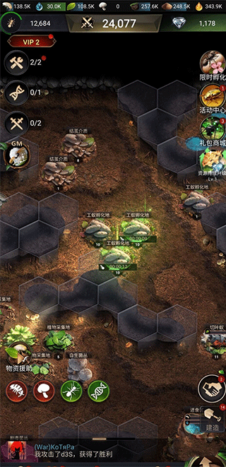 1、新增基因进化系统(蚁后25级且变异菌丛25级时,任意一个基因星级达到满级后解锁对应进化);