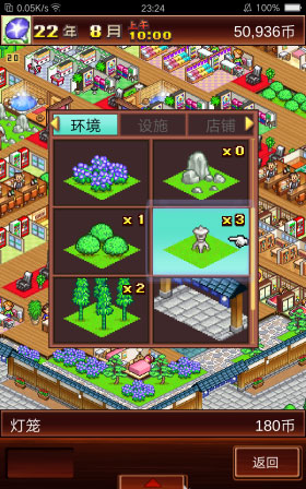 7、在各种设施周围布局选择种植植物都可以使任何设施周围的景色上升,把人气值提高。小编测试后发现种植的植物有限影响范围为以植物为中心四周的2*2个单元,玩家合理选择位置是能使之达到植物数量最小值而周围的建筑物增益效果影响面积最大。