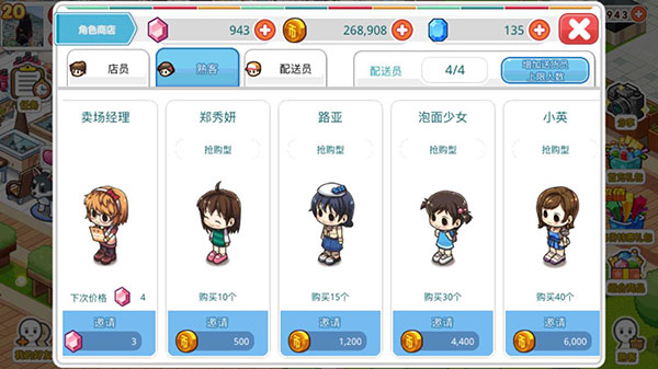 2、店员换装。这个在前期跟着任务走买的衣服就行,后期金币多了再换也可以。