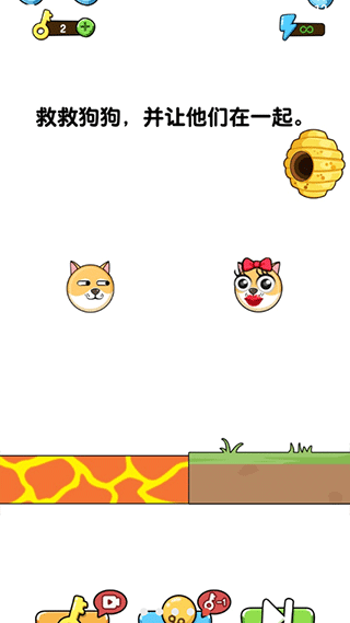 1、第一关画个口子围住狗狗,就可以过了。2、第二关画个圈圈圈住狗和草地就可以了。