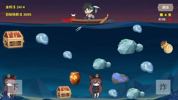 2、【玩法】以黄金矿工的玩法为基础,加入了非常多的原神元素,从而增加游戏可玩性;