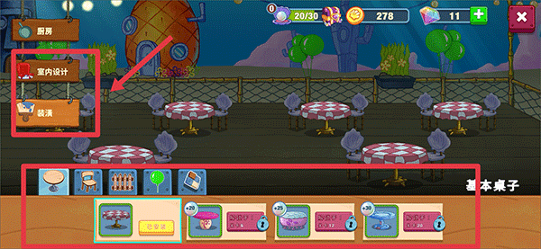 1、通过比基尼堡的各种餐厅和厨房,解锁更多的美食菜谱,吸引客人前来就餐消费;