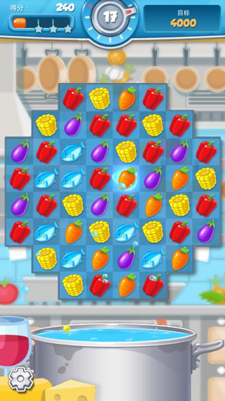 游戏采用关卡闯关的形式进行,通过消除与餐馆经营的融合,让玩家在周游世界的过程中,以三消的方式成就你的大厨梦想。与传统的消除游戏一样,游戏时你需要在规定的步数之内,把三种相同的食材连成横排或者竖排即可进行消除,而且一次性匹配的食材越多,所获得的分数就越高。当你达到规定的分数或者完成特定的消除目标的话,即可闯关成功。只不过你要是追求三星的话,还得多开动脑筋才行。