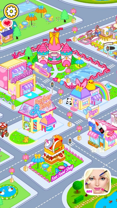 公主小镇世界公主游戏是一款可爱卡通风的自由模拟养成类手游,在这里有许多不同的房间可供玩家探索,城堡、超市、理发店、玩具屋...通过简单点击和拖动角色,按照自己喜欢的方式游戏。