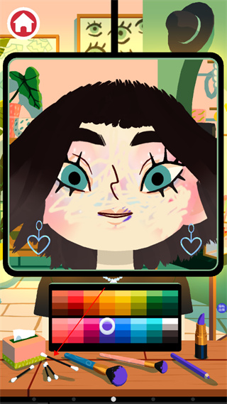 游戏玩法自由性很大的,我们随意的选择喜欢的进行试玩,游戏中的人物还会撒娇这个也是比较有趣的。 要化妆的话直接点击桌面上的道具,找到眼影盘就可以化妆了。