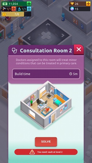 一个有价值的医院需要实施不同的科室,如放射科、创伤科、医务室、急诊室,甚至是配备齐全的候诊室。当然还有最好的手术室!明智地再投资您的收入,以改善您场所内的所有区域,并快速做出决定,为越来越多的患者提供服务。