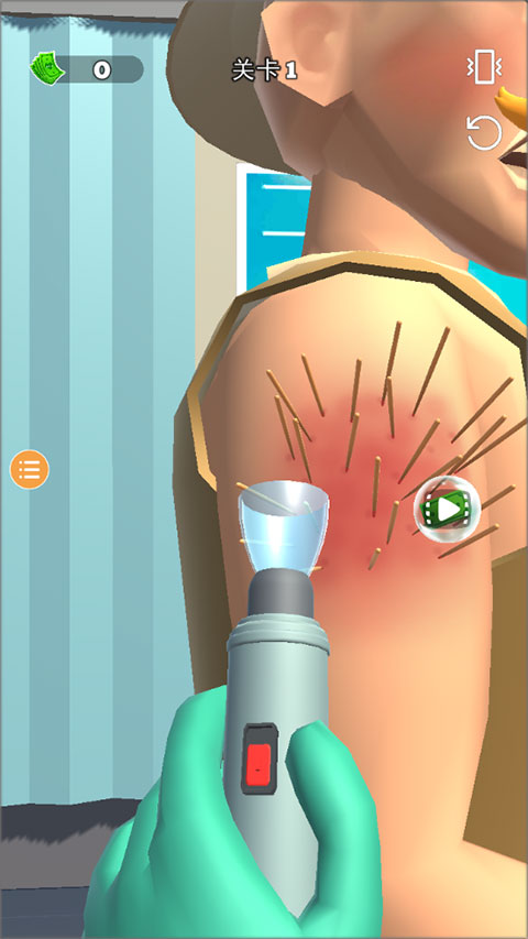 1、下载安装好超级医生官方版,进入游戏,这里我们需要帮助患者将这些刺都拔出来。