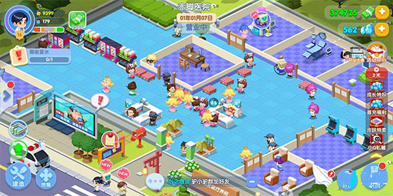 游戏亮点包括打造精英医疗团队、扩建医院、处理突发情况等。此外,还能为医院换皮肤,玩家可以根据喜好选择不同的风格。装备系统也很有趣,可以提升职员能力,解锁新属性需要花费钻石或参与活动。