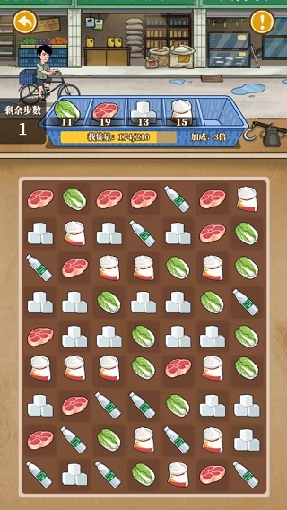1、点击3个及以上相连且相同的食材,即可收购消除的食材;