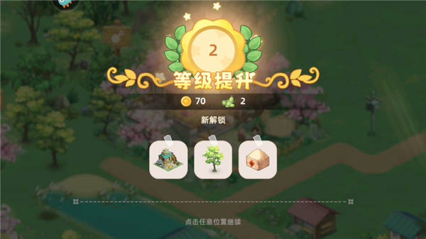 5、这个时候就可以获得“扫把”,完成任务之后就可以进行等级提升,点击任意位置就可以继续了。