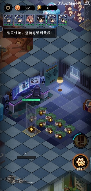 前期先用技能升级门到2级,鬼出来后不用管,直接把床升到3还是4级,然后门口放8只熊,把门升级到5级,再把床升级到5级,这时候鬼还不到4级,把所有炮升级到比鬼高一级就可以了。