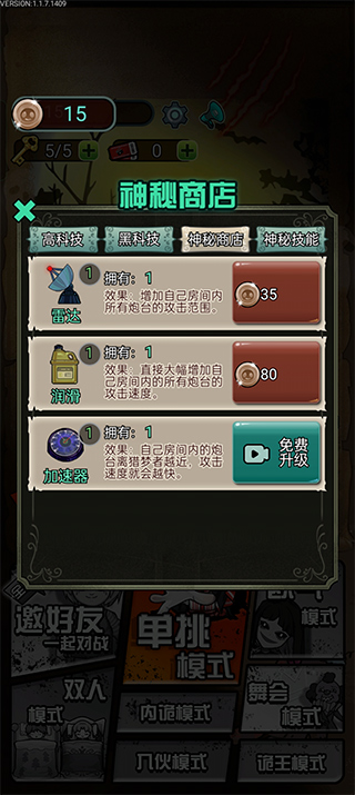 升级到+8后造4个炮台,也可以更多,如果到这时鬼还一直在打你可以退了重开,不然很影响后续经济发展。为什么前期一定要多造炮台?因为游戏中没有护甲机制,而升级炮台,炮台的伤害会翻倍,在这里不妨做一个数学题,1个2级炮台显然是等同于2个1级炮台的输出,但1个2级炮台的花费为8+16=24,而2个1级炮台的花费为8+8=16,这个数字差异越到后面是越明显的,多造炮台才能省下来钱快速上经济。