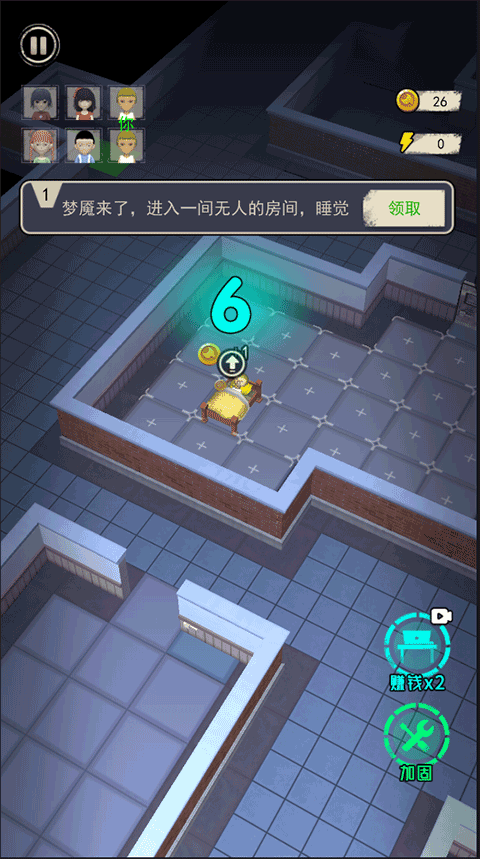 3、你可以和你的室友一起安排塔防,这样会更坚固。选择床铺时,你可以尽量站在角落里。