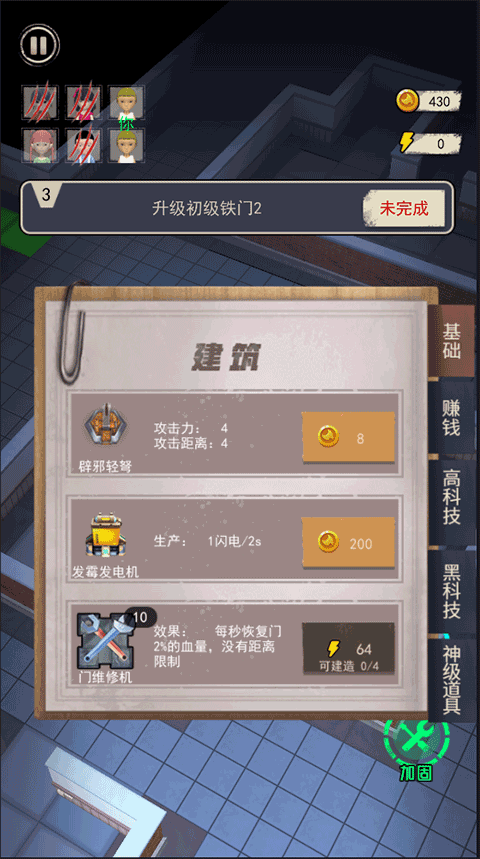 1、游戏中的猛鬼魂会在关灯时出现,所以玩家需要在关灯前尽可能多的布置主防线。
