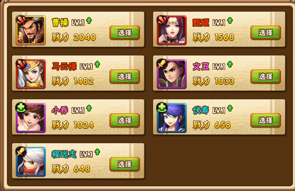 点击选择想要上阵的武将。