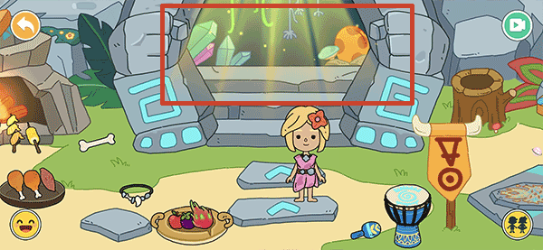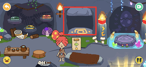 在山洞里找到红色方框内门的四样物品,放上去后门就会自动打开。