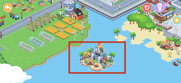 打开游戏后,可以在地图各处点一点,其中这个岛上有个小秘密,可以点击红色方框内的互动按钮;