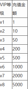 1、VIP等级对应的充值金额表。