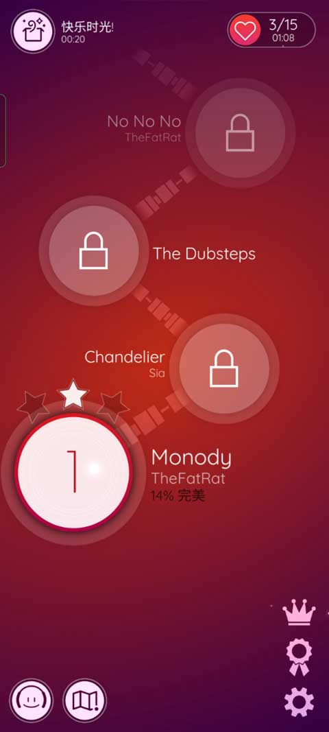 2、完成一首歌来解锁一个新的歌,有很多的免费的歌曲等着你。