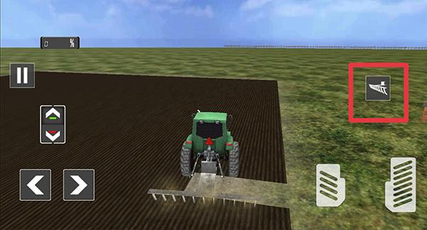 3、工具安装后驾驶车前往农场,到达农场后,点击右上角犁图标即可完成耕田