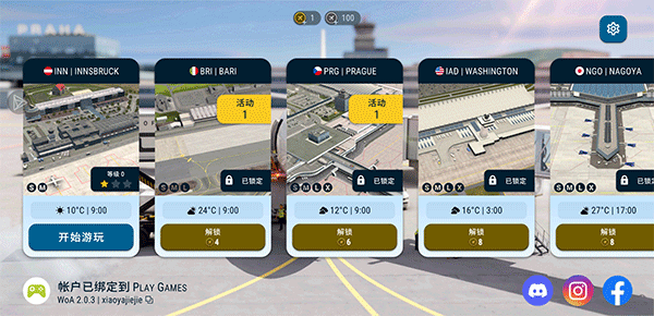 1、使用谷歌加速器打开游戏后选择已解锁的机场游玩