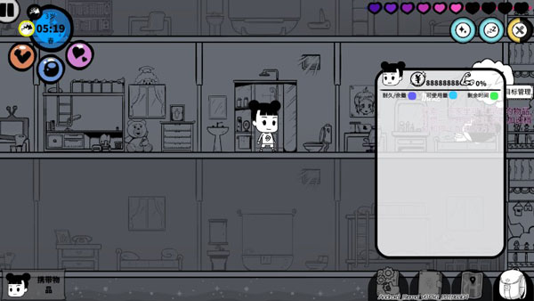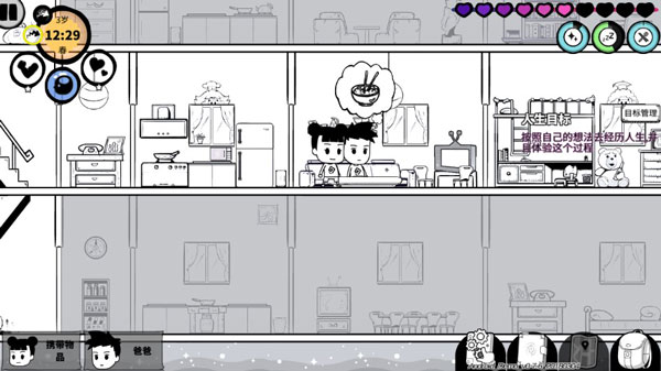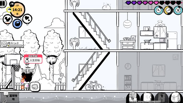 游戏提供三种家境:贫穷、小康和大富大贵,每种家境都有不同的起跑线。玩家需要管理多个数值,如清洁值、睡眠值、饱食值等,这些数值会因行为而变化,并影响人物的健康状态。此外,游戏中还有许多有趣的玩法,比如钓鱼、做作业、赚钱和互动家具。