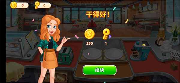 1、完成烹饪目标获得奖励,把餐车的厨具全部升级,还能重新装扮餐车。