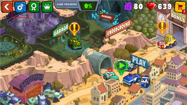1、打开汽车吃汽车3最新版本,点击左上角【齿轮】图标,