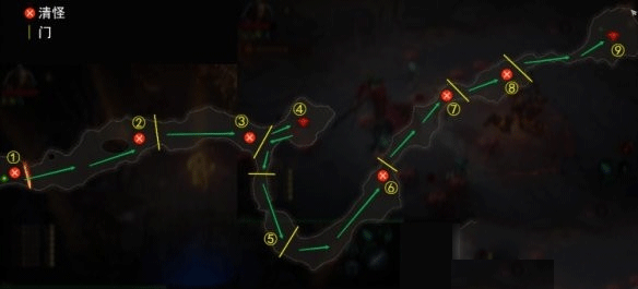 ①清掉小怪火门消失→②清掉小怪火门消失→③清掉小怪火门消失→④第一次打巴尔→⑤与佐敦对话,佐敦开火门→⑥清掉小怪,佐敦开火门→⑦清掉小怪,佐敦开火门→⑧清掉小怪,佐敦开火门→⑨第二次打巴尔,结束副本。