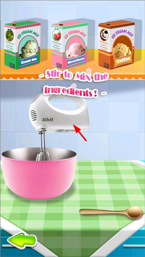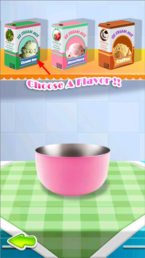 5、等冰淇淋冻好了,选择一个玩家喜欢的造型,然后将冰淇淋球拖到闪动的圆圈里,玩家可以组合不同的口味,让它更独特;