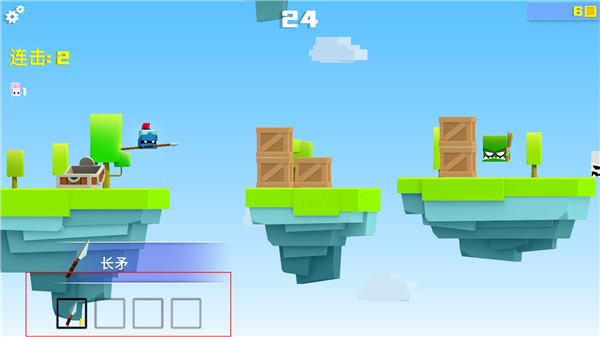 游戏里面你可以获取到宝箱,免费的宝箱中会有击杀敌人的武器,比如斧头,矛,火箭,炸弹等等,每个地方切换不同的武器,会让你前进的更加顺利。收费道具包括头盔,星星,皇冠,晶块等等,买到不同的头盔能够使用到不同的武器,确实有点意思,皇冠可以用来复活,解锁宝箱等等。