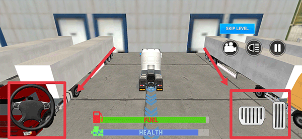 4、在游戏中玩家需要利用左下角的轮盘操控卡车的方向,右边为倒车和前进
