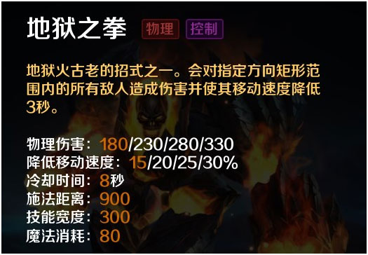 一、地狱火1、技能1地狱之拳:地狱之拳,成长性价比很高,满级有百分之30减速效果,建议主加。
