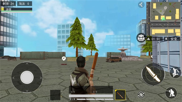 4、利用下方虚拟按键控制人物角色移动,同时我们还需要去拾取地上的物资;