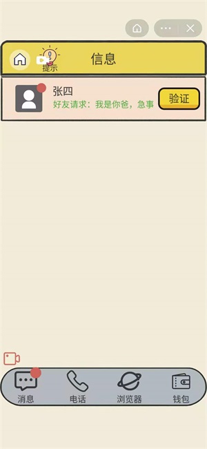 第一关第一步:我们点击消息框中的张四好友申请验证按钮。