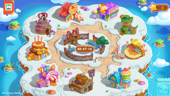 4、游戏蛋糕涂鸦画画,派对时间等多个场景,玩家需要获得更多星星解锁不同的场景以及蛋糕,等你来体验。